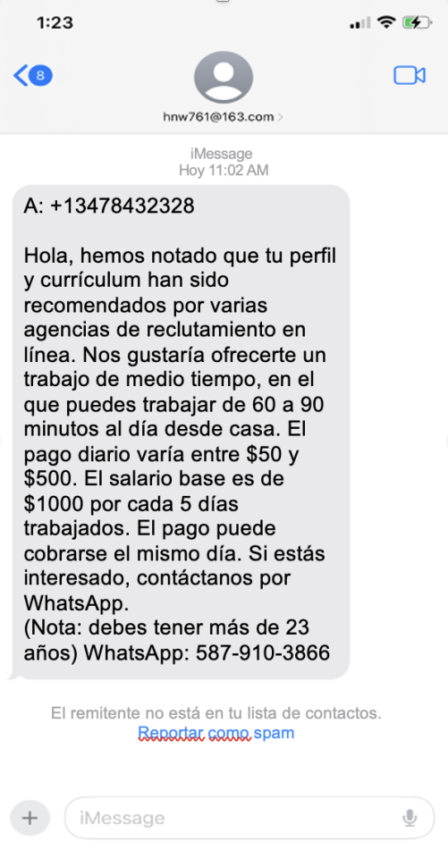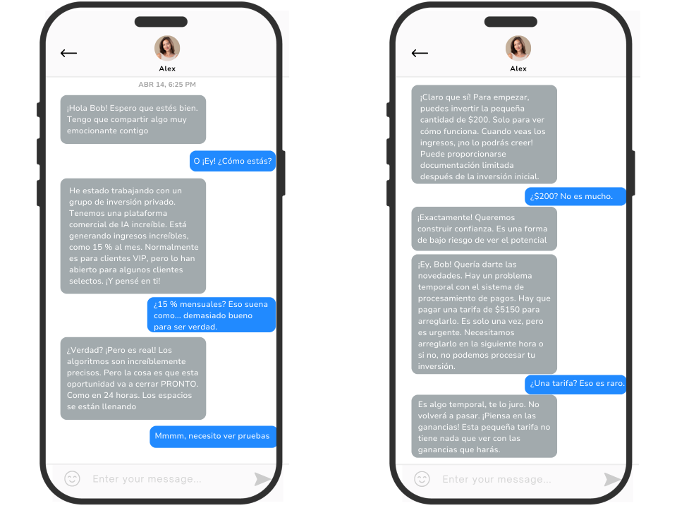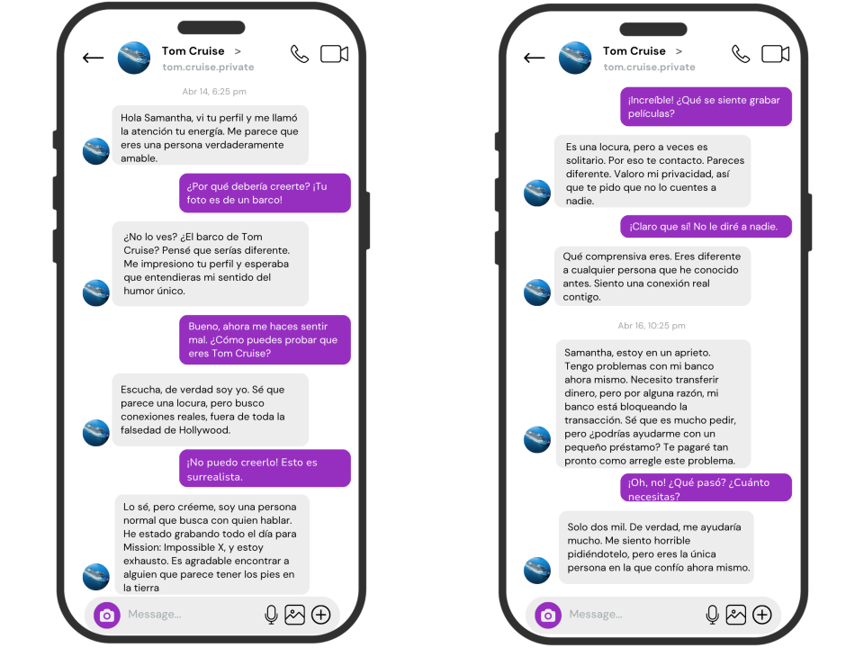 A menudo estas estafas empiezan en línea o con un mensaje de texto. Es una jugada larga, porque quieren crear confianza.