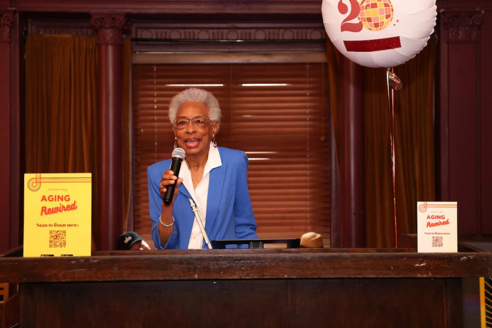 Photo: Sheila speaking at OATS 20th anniversary & podcast launch party. Jason DeCrow/AP Content Services for OATS from AARP.